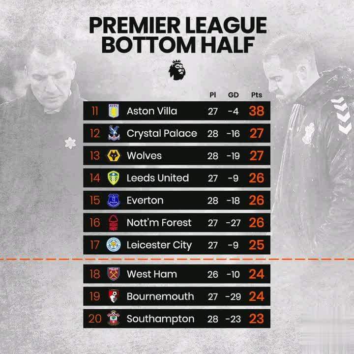 The gap from 12th to 20th in the Premier League is just 4⃣ points…One of the most exciting relegation battles in years!